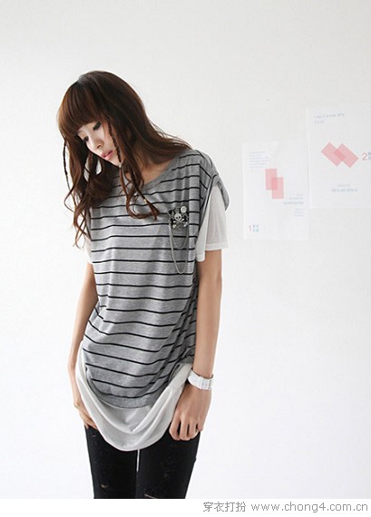 02 条纹灰色T搭配白色宽T,层次搭配很有味道